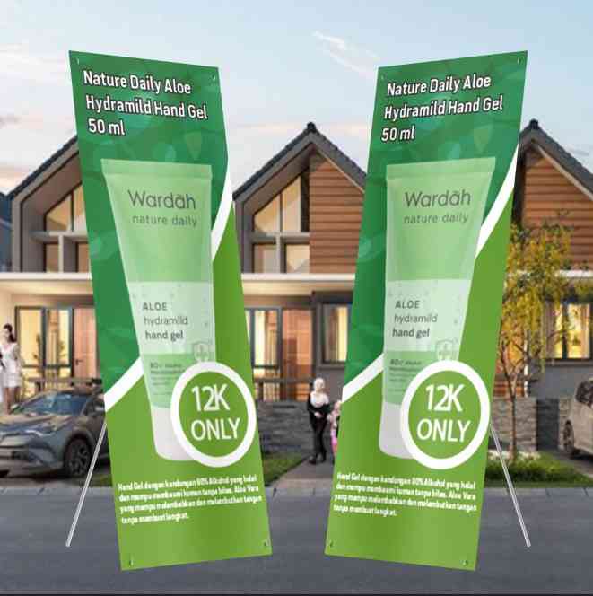 X-Banner ini didesain dengan nuansa hijau cerah dan motif daun aloe vera yang menekankan kesan alami dan higienis, menampilkan produk Wardah Nature Da...