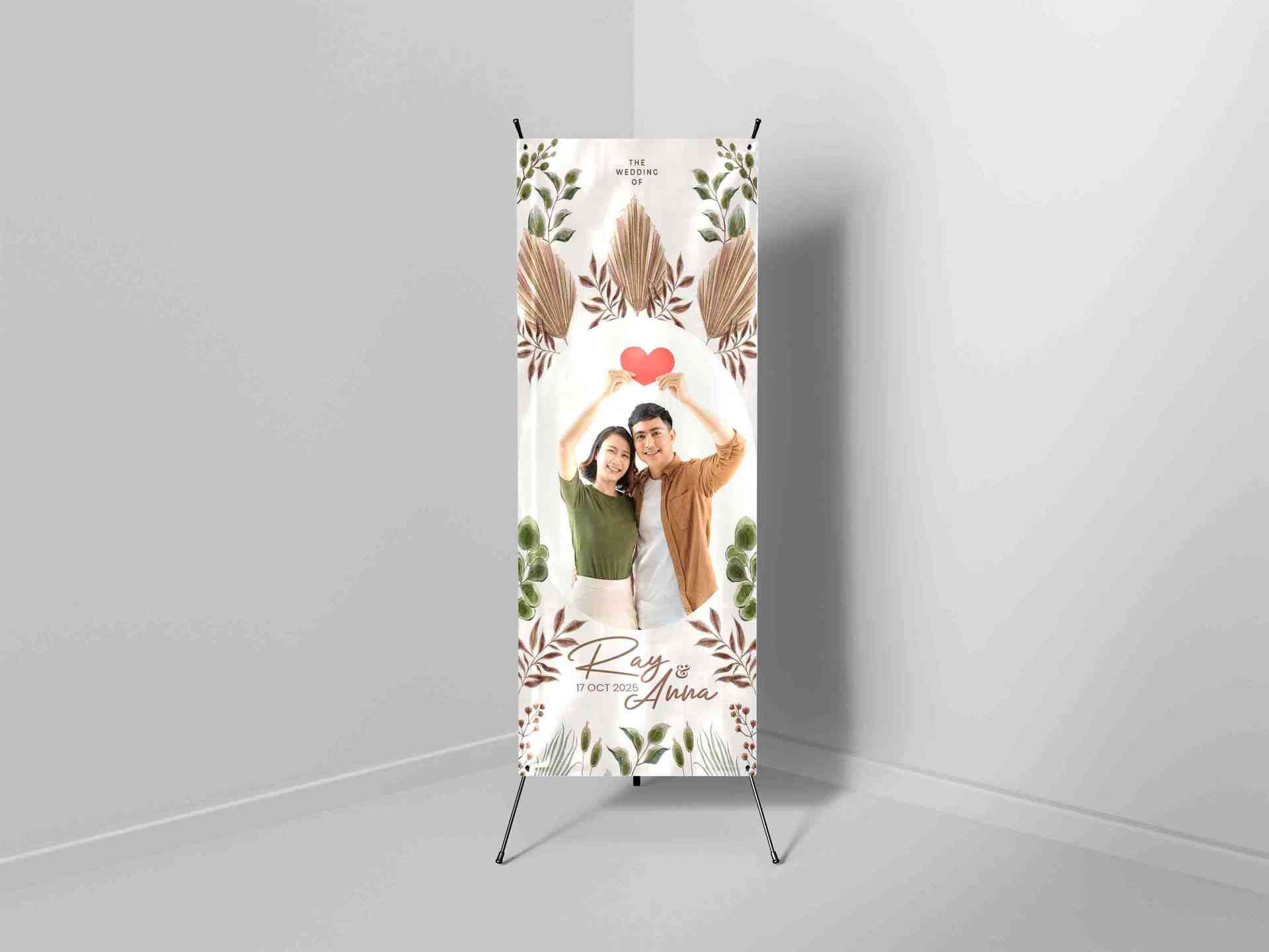 X Banner Wedding ini menampilkan pasangan bahagia dalam balutan desain minimalis bernuansa earthy tone yang hangat dan elegan. Dihiasi dengan elemen d...