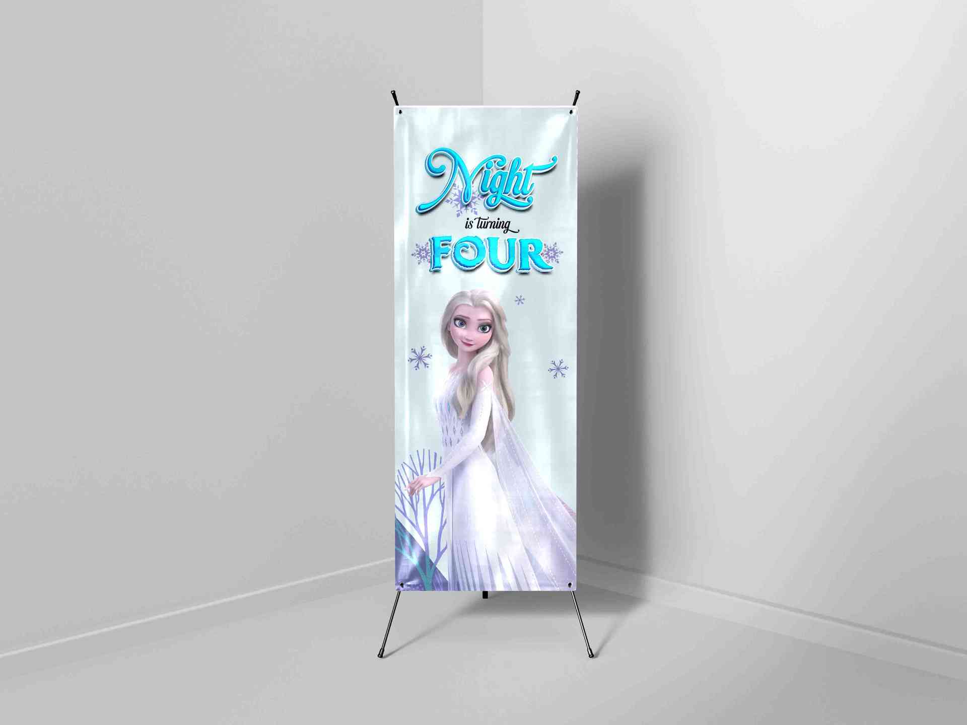 X-Banner ini didesain khusus untuk perayaan ulang tahun anak yang mengangkat tema Frozen, menampilkan karakter Elsa dalam balutan gaun es yang anggun...