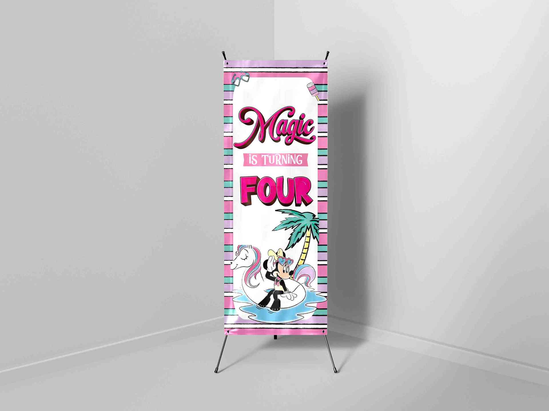 Desain X-Banner ini mengusung tema liburan tropis yang fun dan menyenangkan untuk pesta ulang tahun anak ke-4. Menampilkan karakter Minnie Mouse yang...