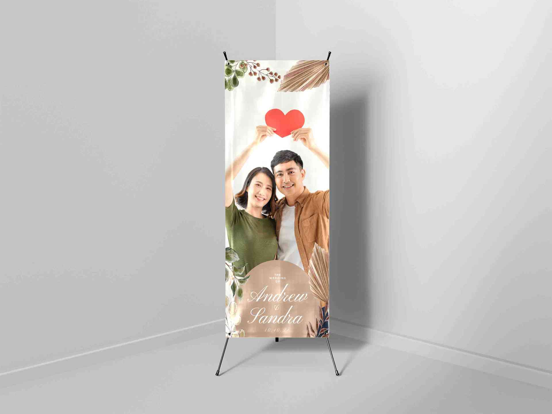 X Banner Wedding ini menampilkan pasangan bahagia dalam balutan desain minimalis bernuansa earthy tone yang hangat dan elegan. Dihiasi dengan elemen d...