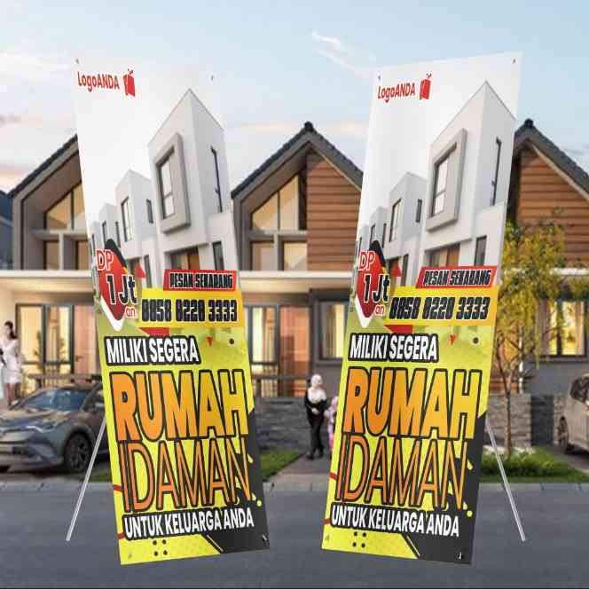 X BANNER ini sangat cocok digunakan untuk mempromosikan proyek perumahan baru, cluster eksklusif, atau hunian modern di lokasi strategis dengan target pasar keluarga muda.