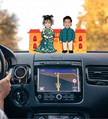 Akrilik goyang-goyang ini menampilkan pasangan pengantin dengan busana tradisional Tionghoa yang elegan dan penuh makna. Dengan latar bangunan orienta...