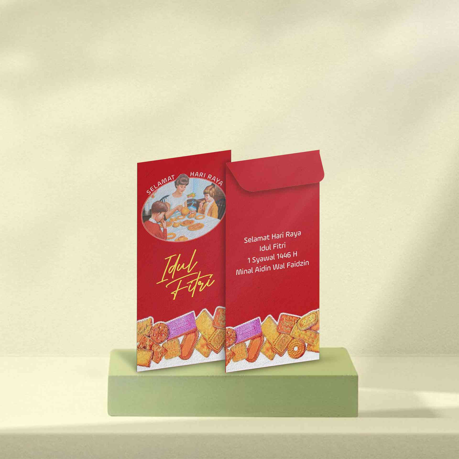 Amplop Lebaran ini hadir dengan nuansa merah cerah yang penuh semangat dan keceriaan ❤️✨. Di bagian atas, terdapat ilustrasi keluarga yang sedang meni...