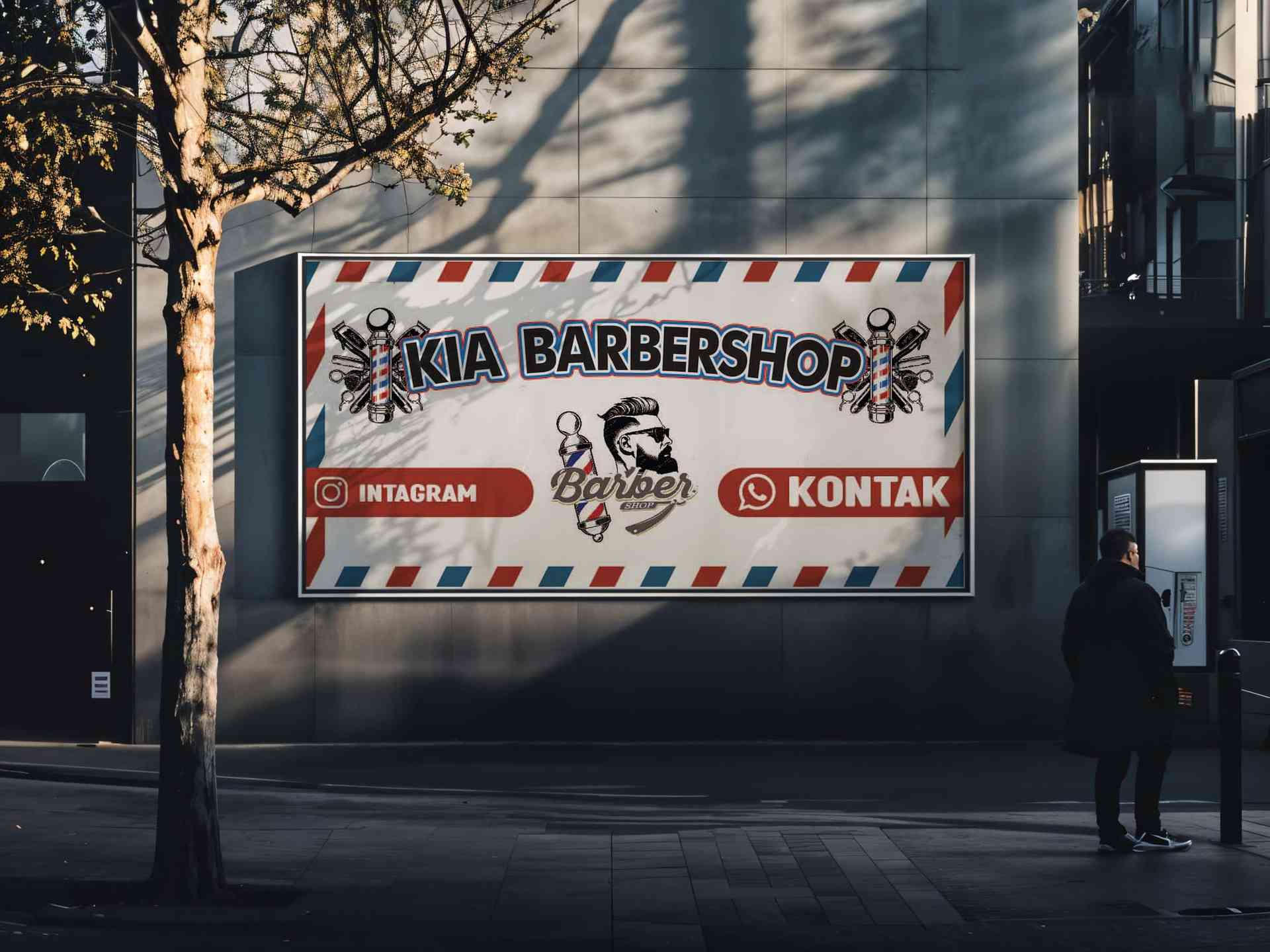 Deskripsi:Desain banner ini dibuat untuk usaha barbershop dengan nama "KIA BARBERSHOP", menampilkan nuansa maskulin dan modern khas tempat cukur pria....