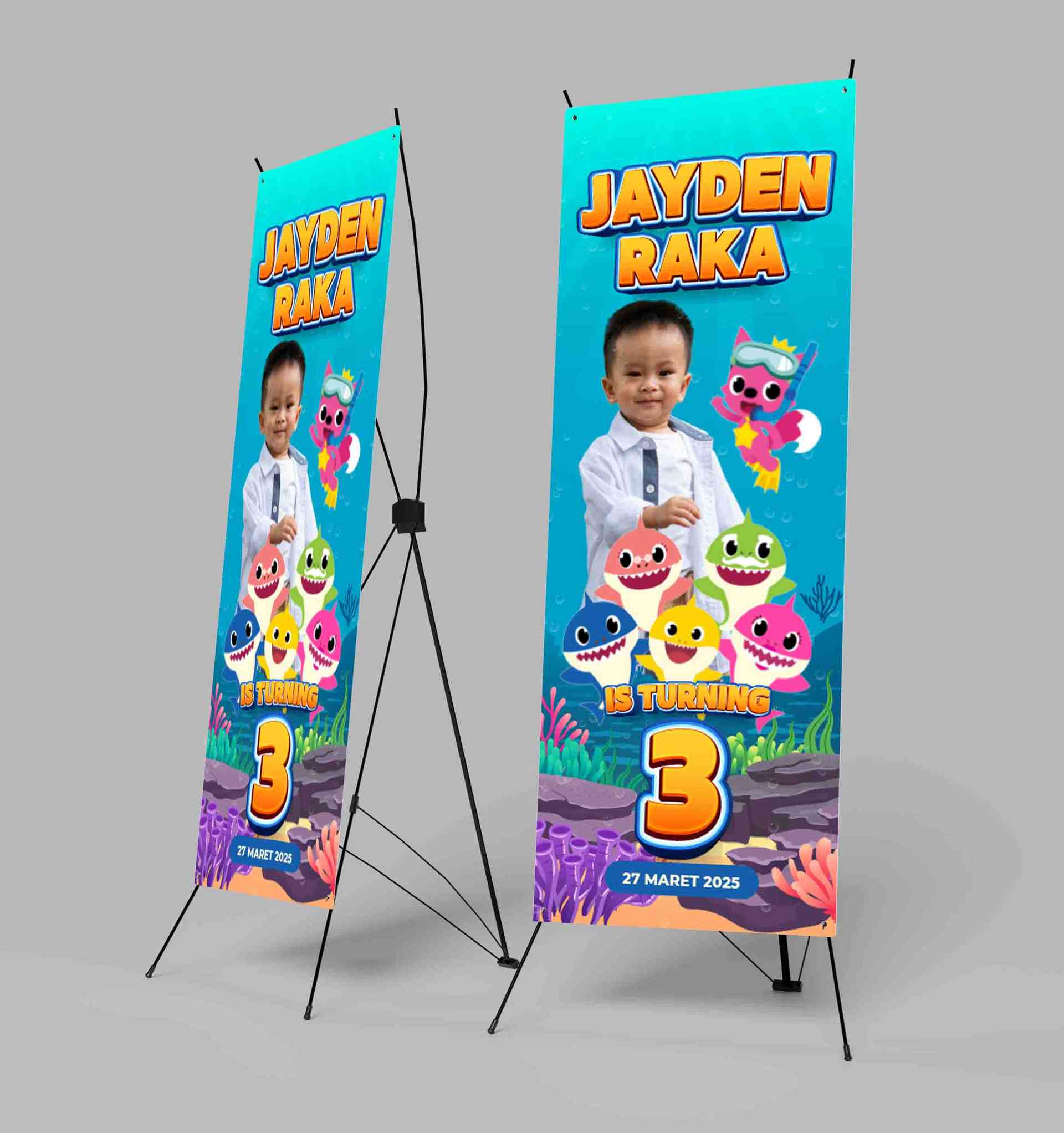 X-Banner ini mengusung tema Baby Shark, sangat cocok untuk anak-anak yang menyukai lagu dan karakter-karakter lucu dari dunia laut. Latar belakang bir...