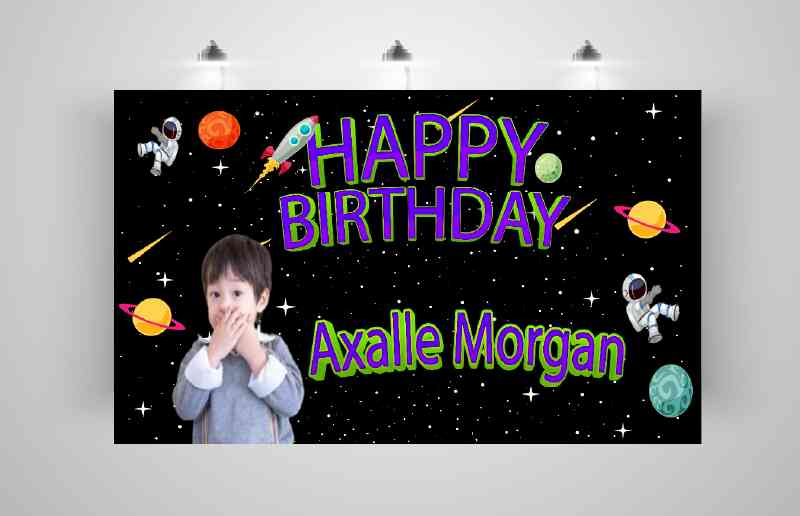 Deskripsi baliho ulang tahun anak bertemakan galaxy:Baliho ulang tahun anak ini dirancang dengan tema "Galaxy" yang mempesona, penuh dengan elemen lua...