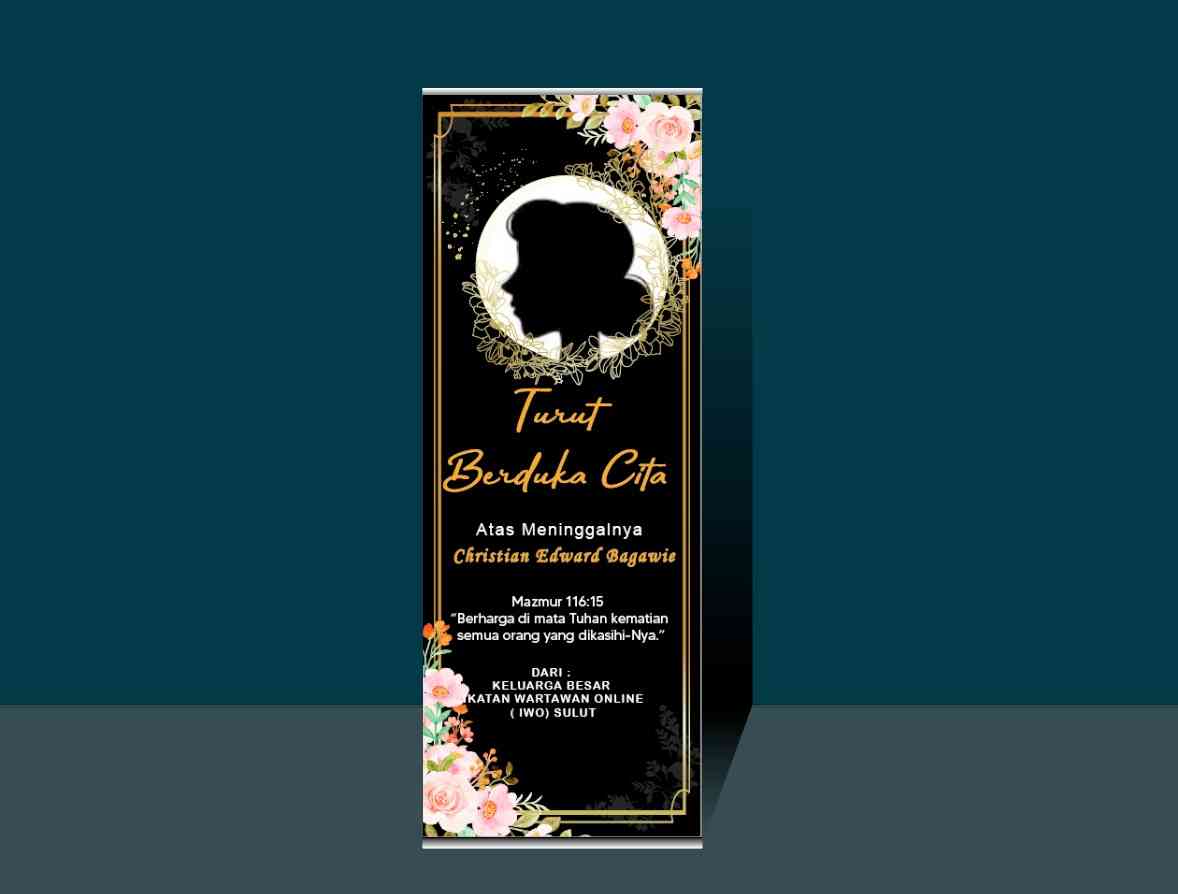 Banner duka berukuran 60x160cm ini dirancang dengan sederhana namun penuh penghormatan, cocok untuk menyampaikan rasa empati dan belasungkawa dalam mo...