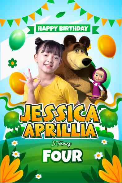 Sambutlah ulang tahun si kecil dengan nuansa petualangan yang menggemaskan dari Masha and the Bear! Baliho ini menghadirkan pemandangan hutan yang pen...