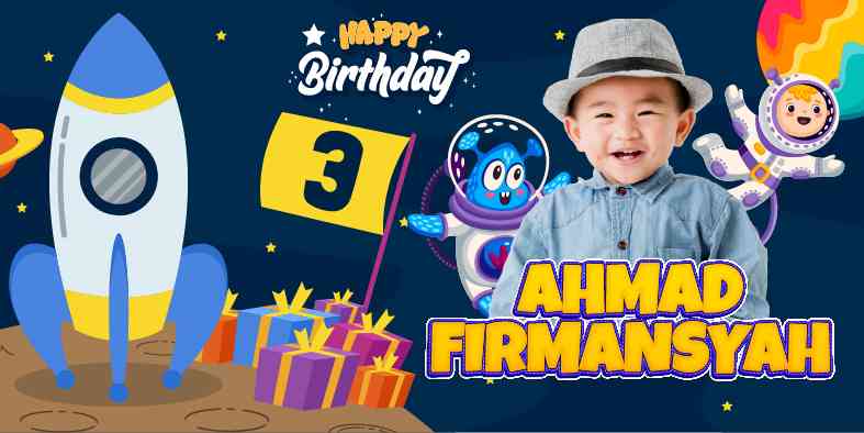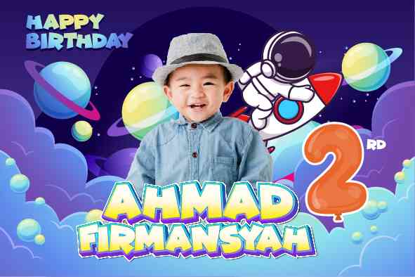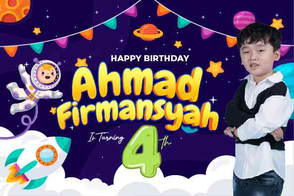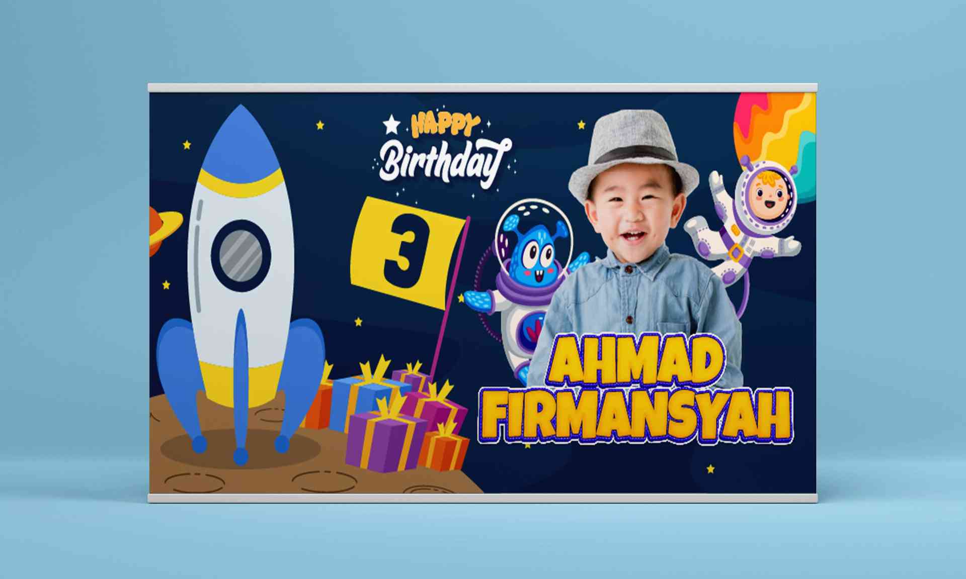 Dengan latar belakang kosmos yang luas, baliho ini menggambarkan perayaan yang luar biasa untuk memperingati HUT dengan tema NASA. Di tengah-tengah ba...