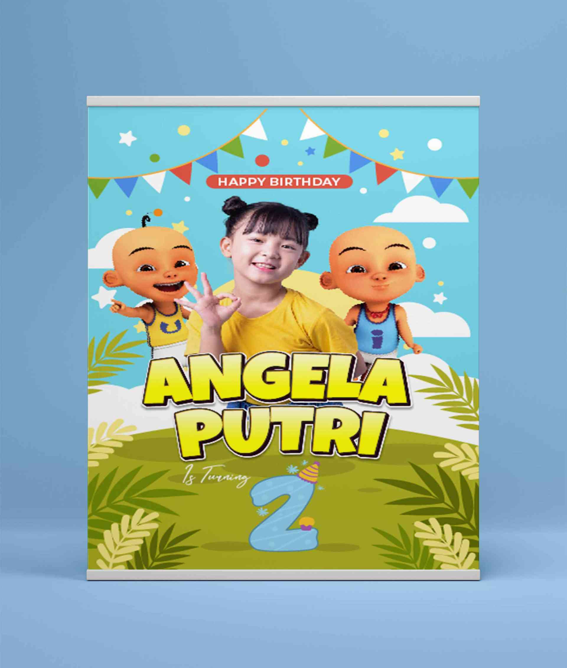 "Gelarlah perayaan ulang tahun yang tak terlupakan dengan tema Upin Ipin! Baliho berwarna cerah menggambarkan kegembiraan dan keceriaan dari karakter-...