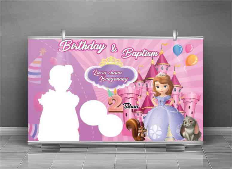 Selamat ulang tahun yang penuh keajaiban! Baliho ini menghadirkan suasana kerajaan yang magis dengan tema Putri Sofia, karakter putri cantik dari duni...