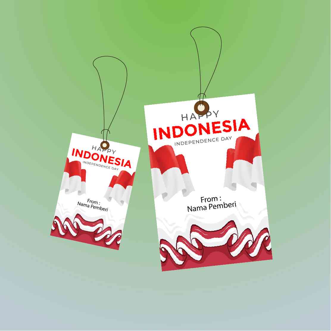 Hangtag dengan tema Merah Putih kemerdekaan ini berbentuk persegi panjang, menggunakan dominasi warna merah dan putih yang terinspirasi bendera Indone...