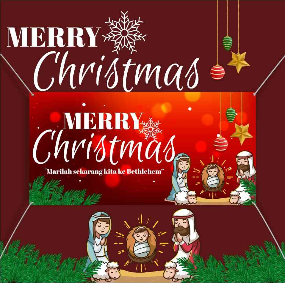 Baliho Natal dan Tahun Baru ini dirancang dengan skala 2:1, berlatar hijau elegan yang melambangkan kehangatan dan kedamaian Natal. Dihiasi ornamen kh...