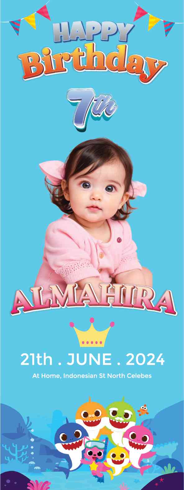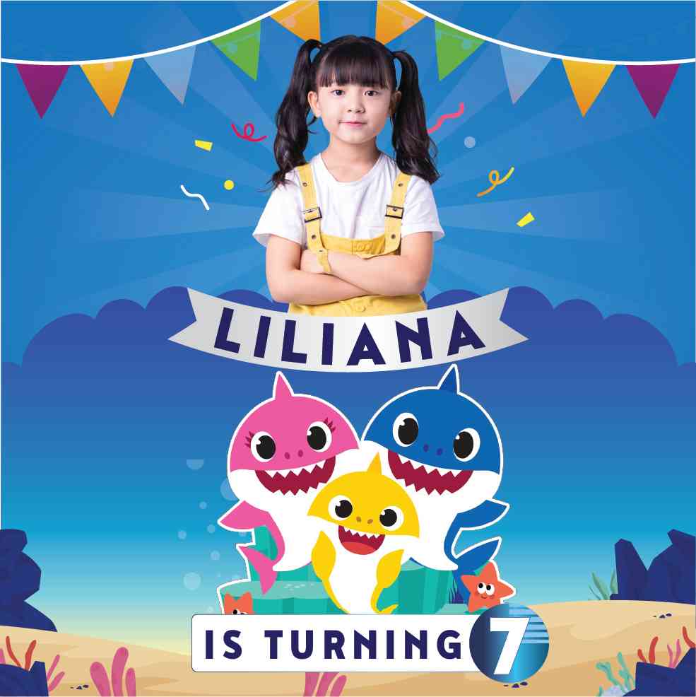 "Selamat datang di pesta ulang tahun yang dipenuhi dengan keceriaan dari dasar laut! Baliho kami menghadirkan dunia Baby Shark yang menggemaskan langs...