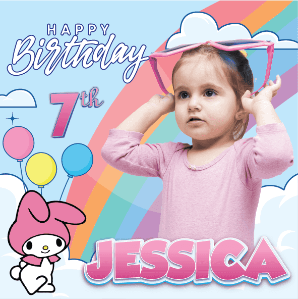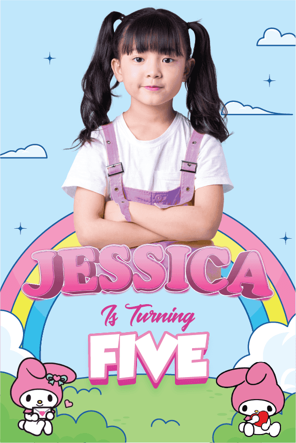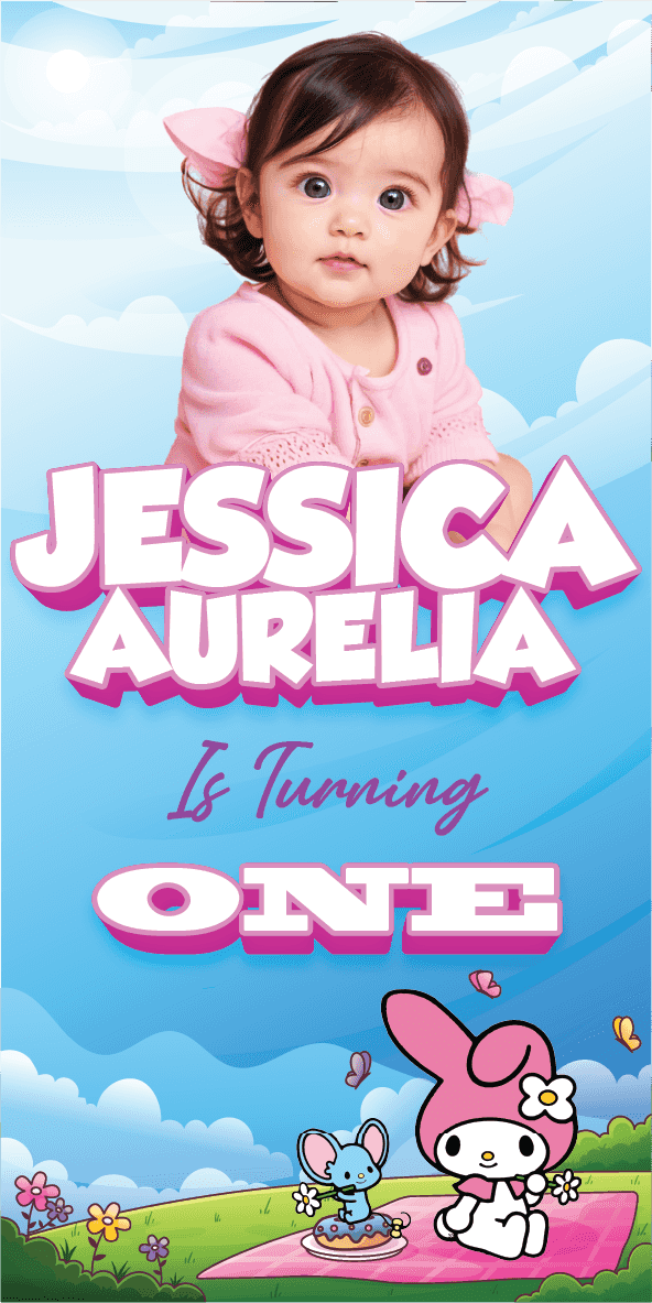 Selamat datang di Pesta Ulang Tahun yang penuh keceriaan dengan tema My Melody! Terpancarkan kegembiraan di setiap inci baliho ini yang memukau, dihiasi dengan gambar indah My Melody yang memikat hati. Latar belakangnya berwarna pastel yang lembut, menampilkan My Melody dalam berbagai pose manis yang pasti mengundang senyum dari setiap tamu yang lewat. Detail-detail kecil seperti bunga-bunga kecil dan sentuhan berlian yang bersinar menambah kesan magis pada dekorasi ini. Baliho ini tidak hanya memperingati momen spesial ulang tahun Anda tetapi juga menghadirkan nuansa kehangatan dan kebahagiaan yang tidak terlupakan. Segera bergabunglah dalam perayaan ini dan nikmati keajaiban My Melody yang membawa kebahagiaan!