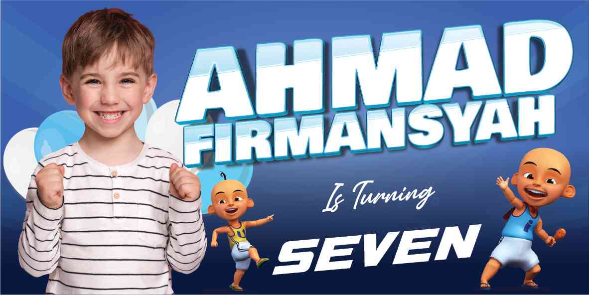 Baliho ulang tahun Upin & Ipin adalah sebuah perayaan penuh warna dan keceriaan yang menggambarkan karakter-karakter yang dicintai dari serial animasi tersebut. Dalam desain baliho ini, Upin & Ipin muncul dengan senyum cerah mereka, dihiasi dengan balon-balon berwarna-warni dan dekorasi ulang tahun yang memikat. Latar belakangnya mungkin dipenuhi dengan elemen-elemen dari dunia fantastis tempat mereka tinggal, seperti rumah mereka di Kampung Durian Runtuh, dengan suasana yang penuh kehangatan dan kebersamaan. Tulisan-tulisan meriah yang mempersembahkan ucapan "Selamat Ulang Tahun" atau pesan serupa memperkaya baliho tersebut, sementara gambar-gambar karakter lainnya mungkin juga terlihat, seperti Kak Ros, Opah, atau karakter-karakter lain yang menjadi bagian dari petualangan mereka. Dengan warna-warna cerah dan gambar-gambar yang menggemaskan, baliho ini menjanjikan sebuah perayaan yang tak terlupakan bagi siapa pun yang melihatnya.
