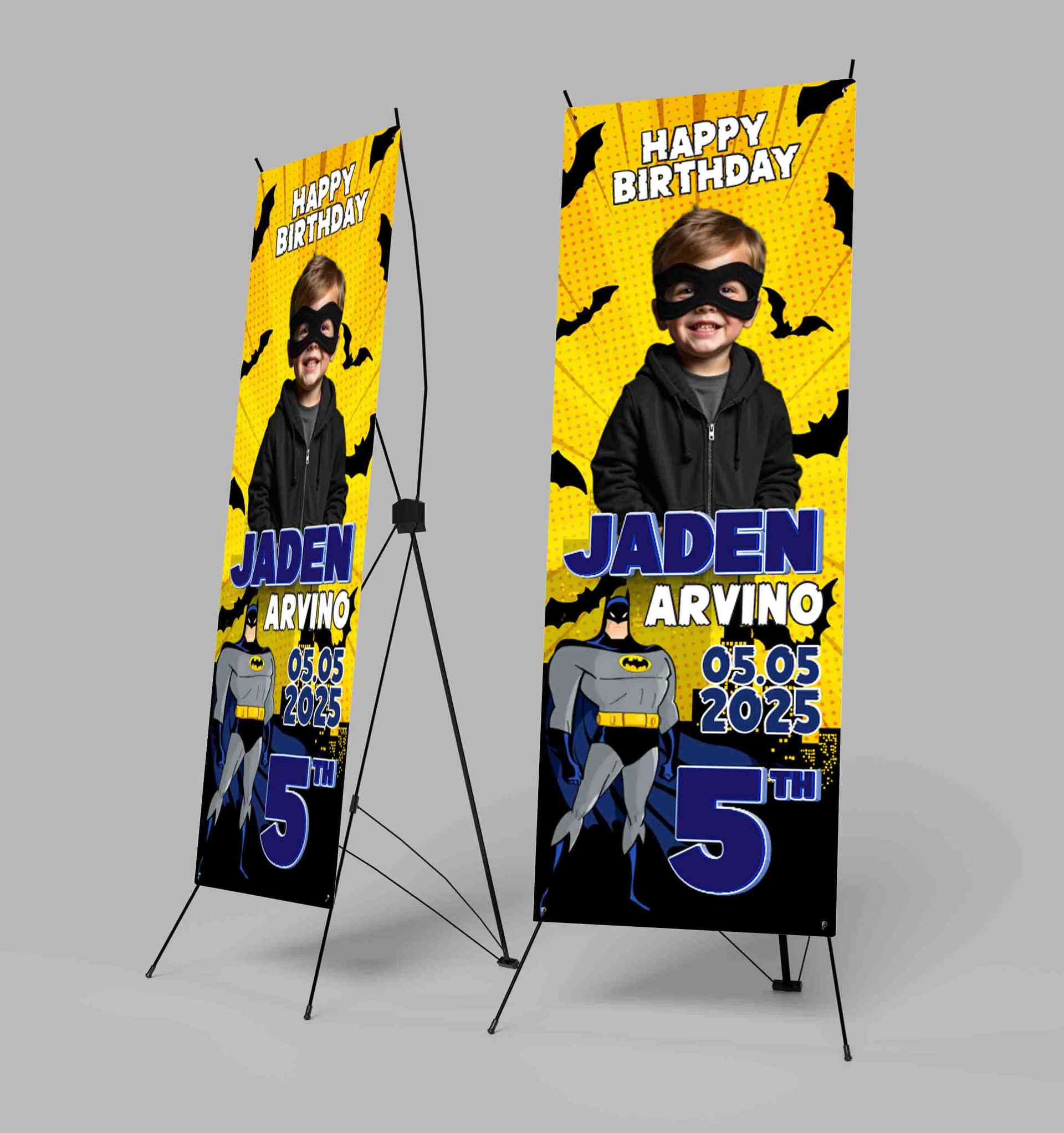 X-Banner ini menggunakan tema Batman, memberikan suasana ulang tahun yang penuh energi dan kehebatan. Dengan latar belakang kuning cerah berpadu denga...