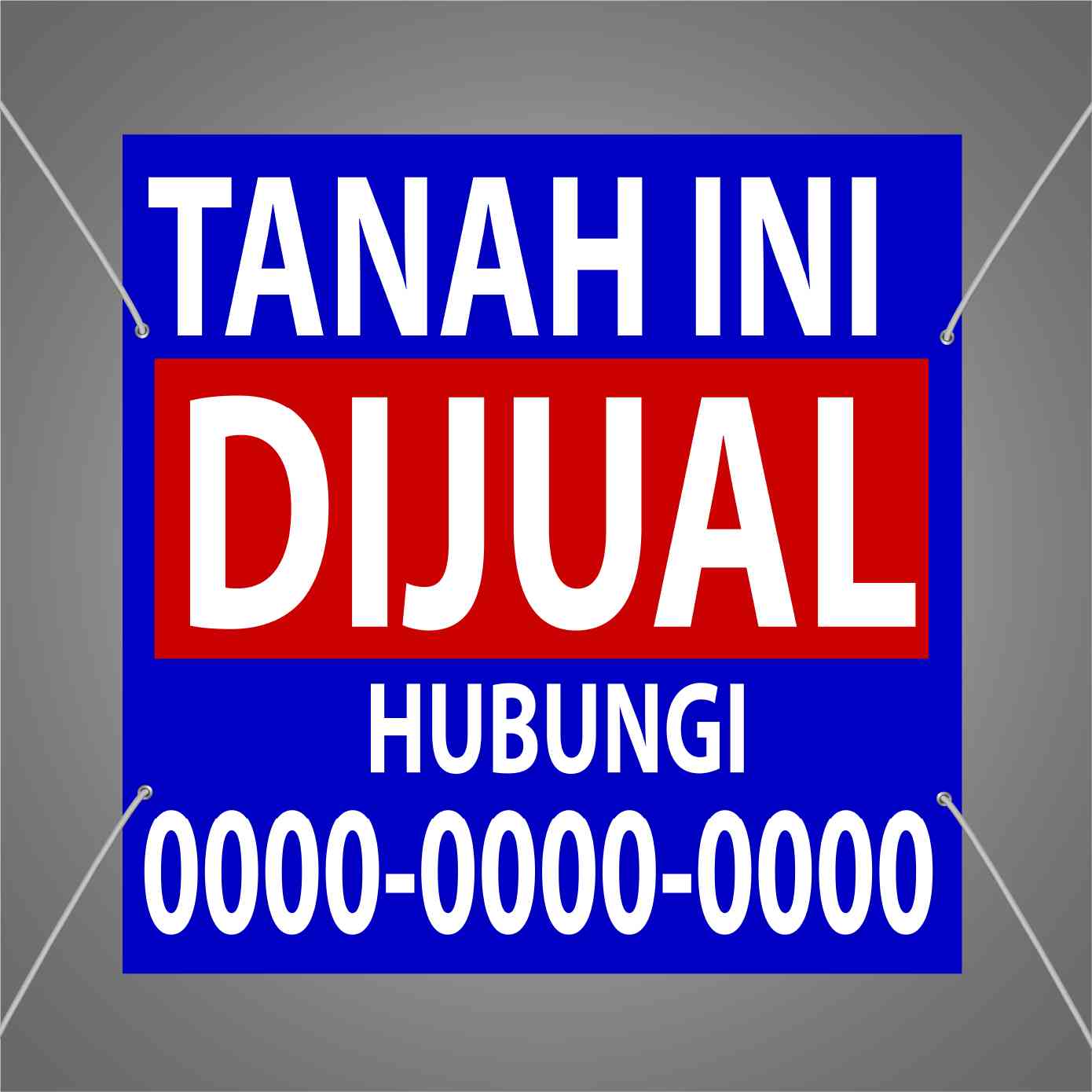 Dengan latar biru tua yang kuat dan tulisan putih yang mencolok, baliho ini didesain untuk menyampaikan informasi penjualan tanah secara gamblang. War...