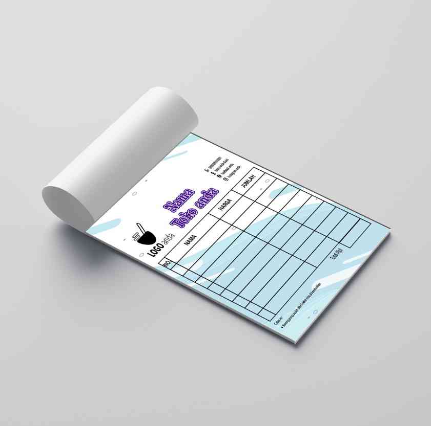 Desain nota yang modern dan fleksibel, cocok untuk berbagai jenis usaha UMKM. Dengan latar bawah bernuansa warna pastel lembut (biru, kuning, peach),...