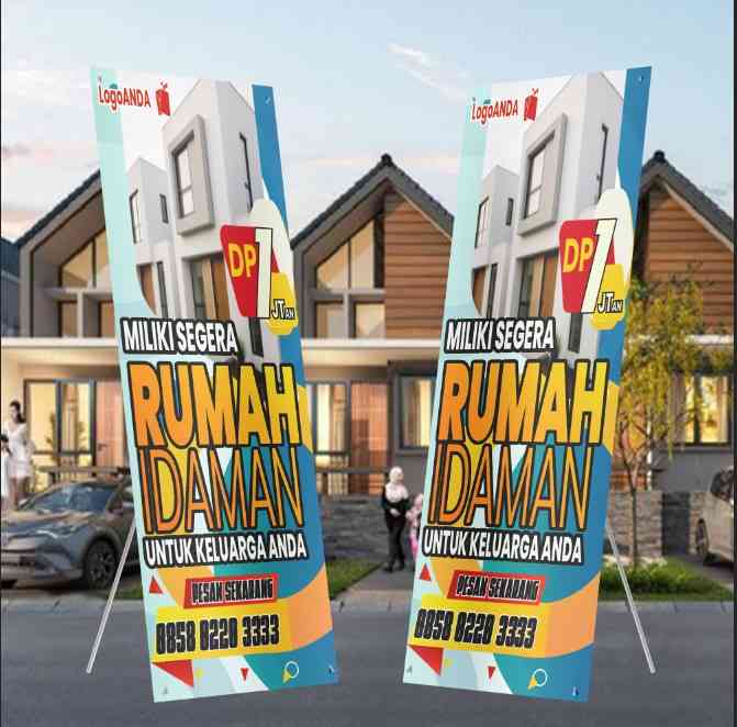 X BANNER ini sangat cocok digunakan untuk mempromosikan proyek perumahan baru, cluster eksklusif, atau hunian modern di lokasi strategis dengan target pasar keluarga muda.