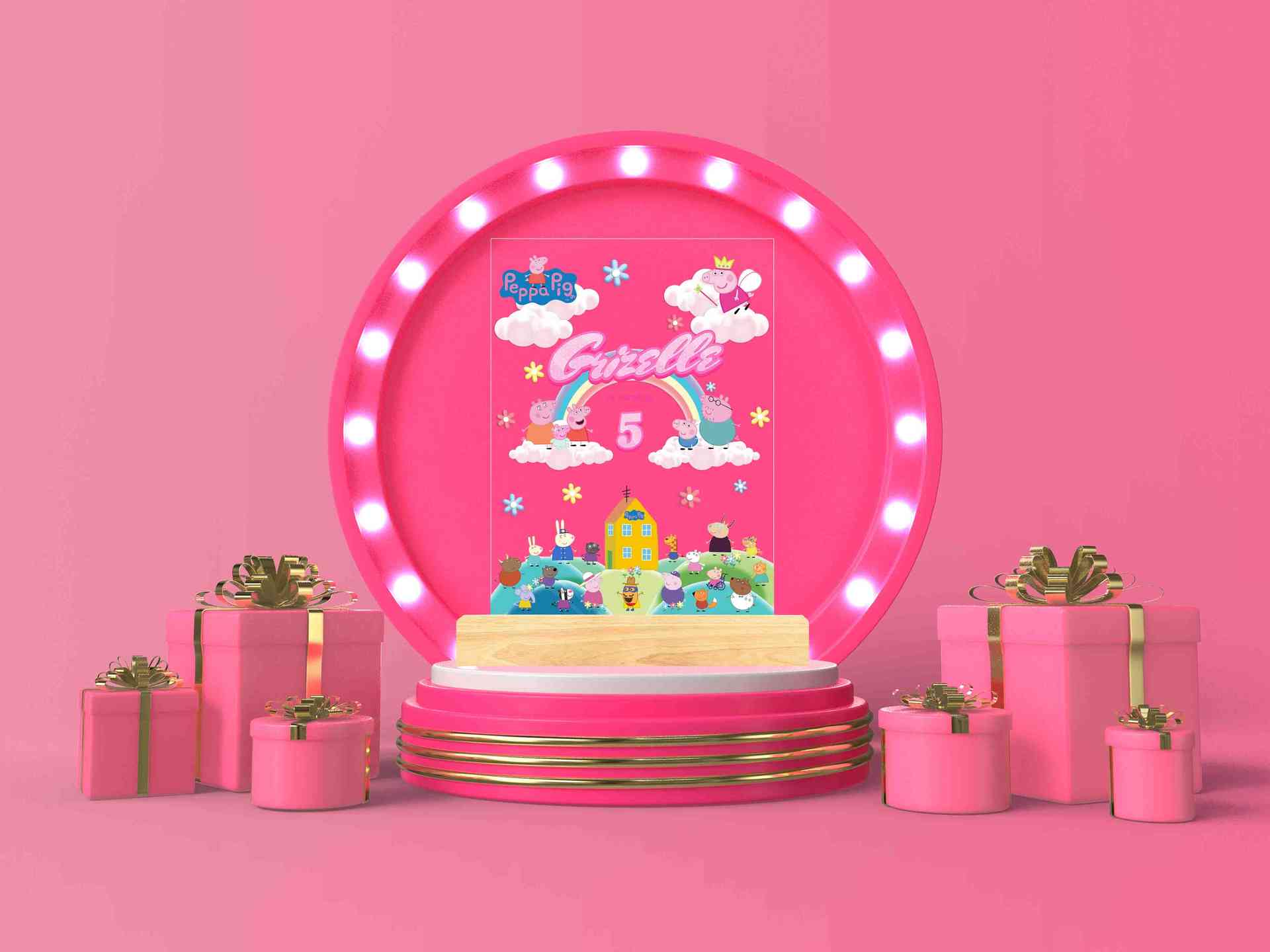 Desain Dream LED ini mengusung tema Peppa Pig yang ceria dan penuh warna, khusus untuk merayakan ulang tahun Gizelle yang ke-5. Dominasi warna pink, b...