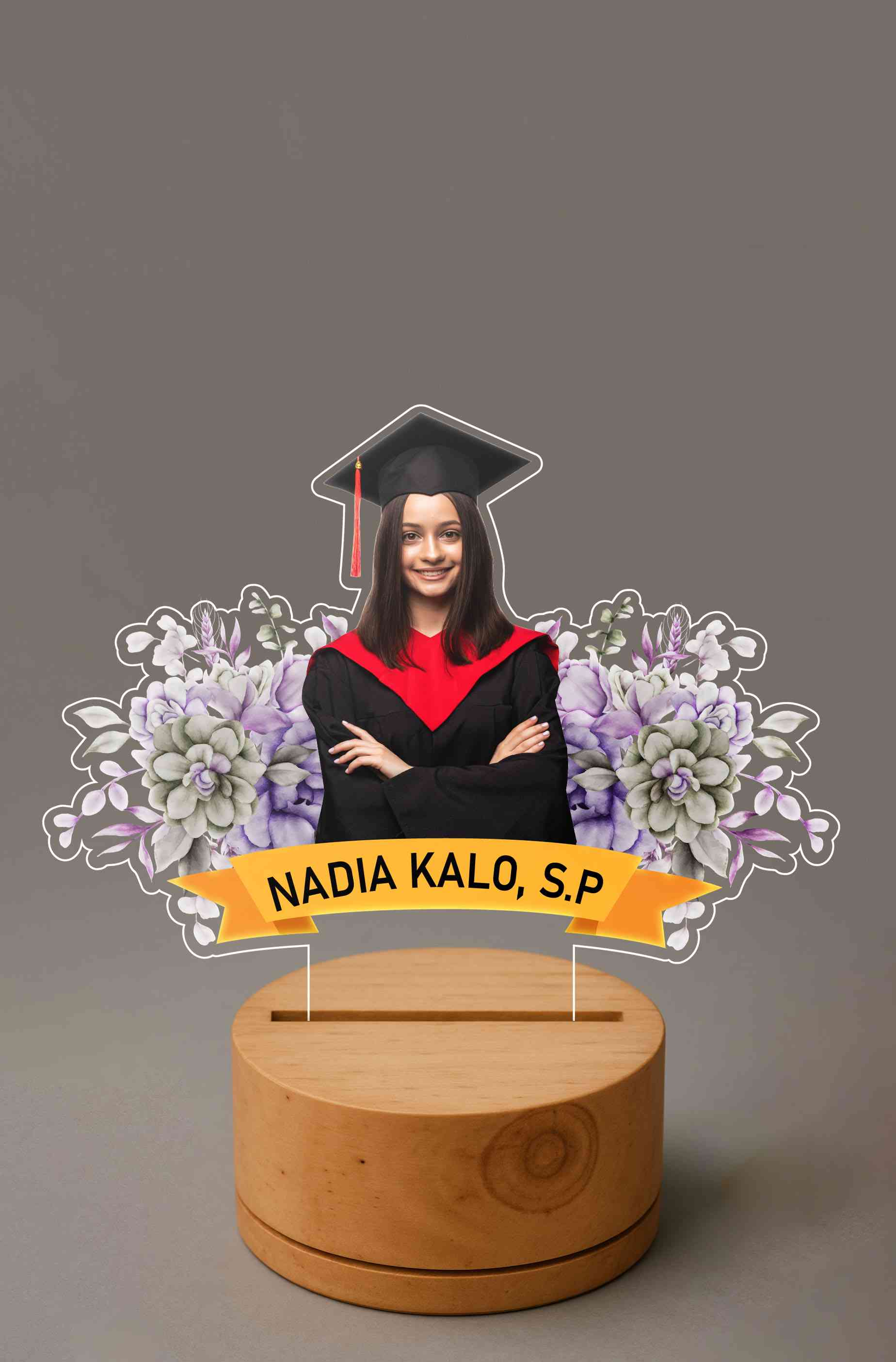 Dream LED wisuda ini menampilkan desain elegan dan penuh makna, dengan foto wisuda sang penerima yang dipadukan dengan ilustrasi bunga succulent berwa...