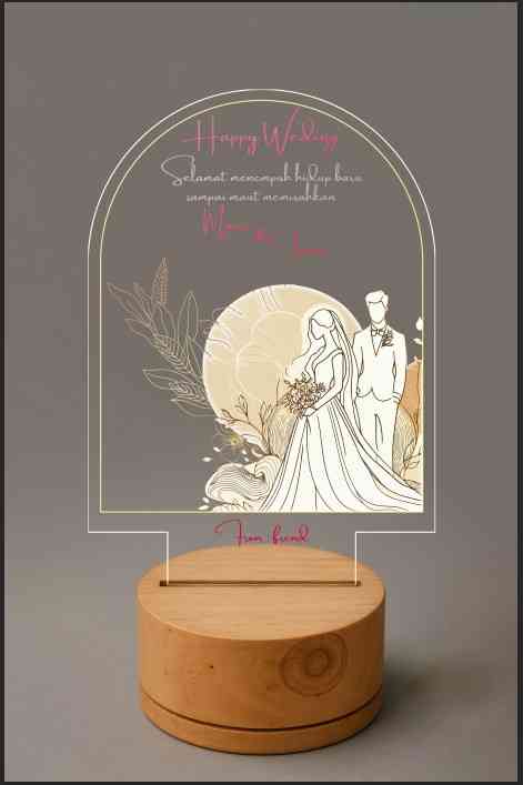 Desain Dream LED ini menampilkan ilustrasi pasangan pengantin dengan gaya line art minimalis yang elegan. Sang pengantin wanita mengenakan gaun panjan...