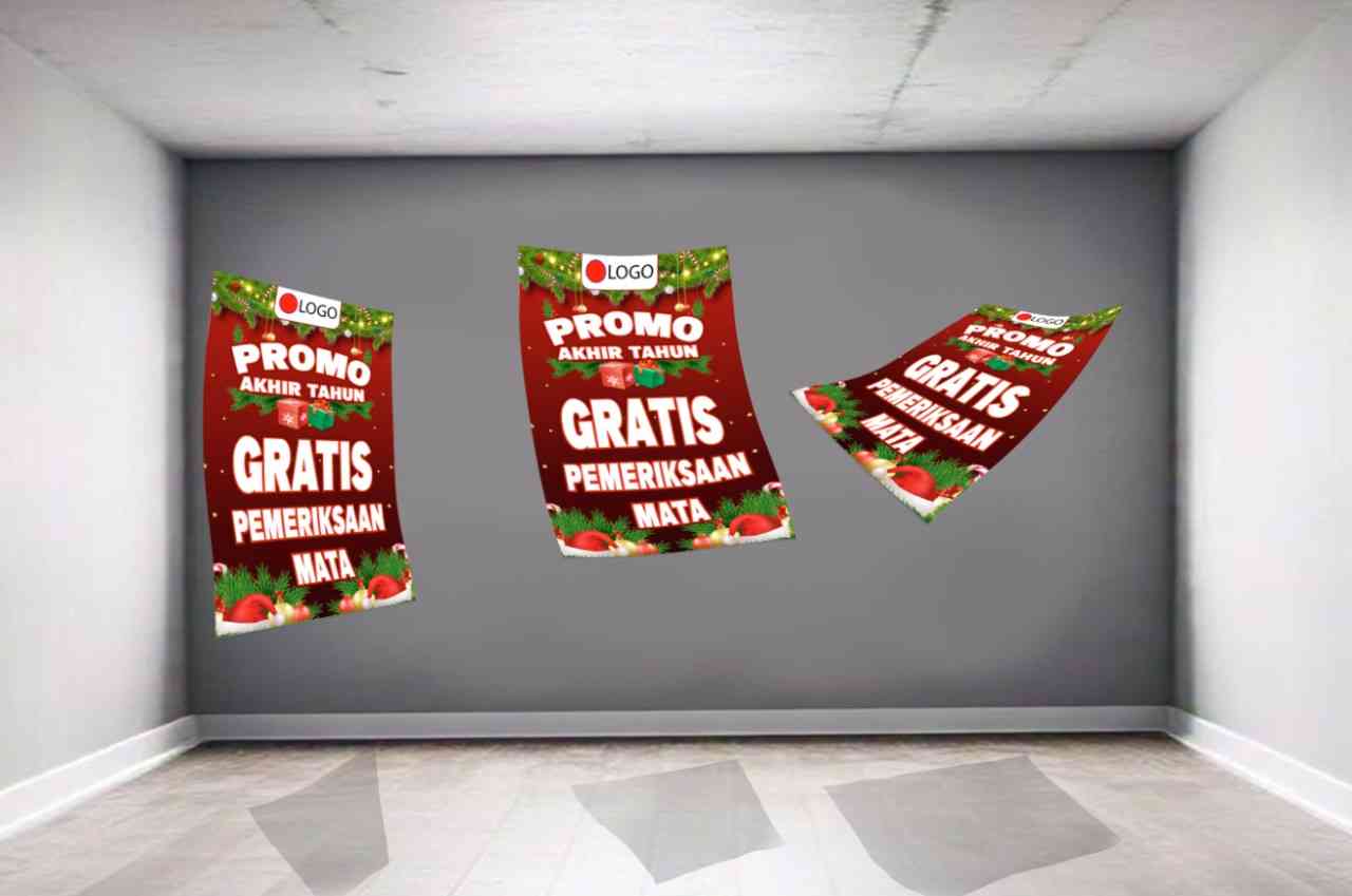 Banner ini adalah standing banner vertikal yang dirancang untuk promosi "Diskon Natal". Desain utamanya memiliki latar belakang berwarna hitam pekat y...