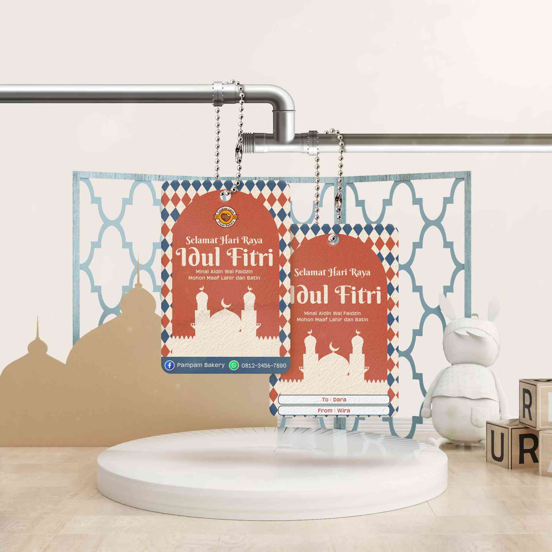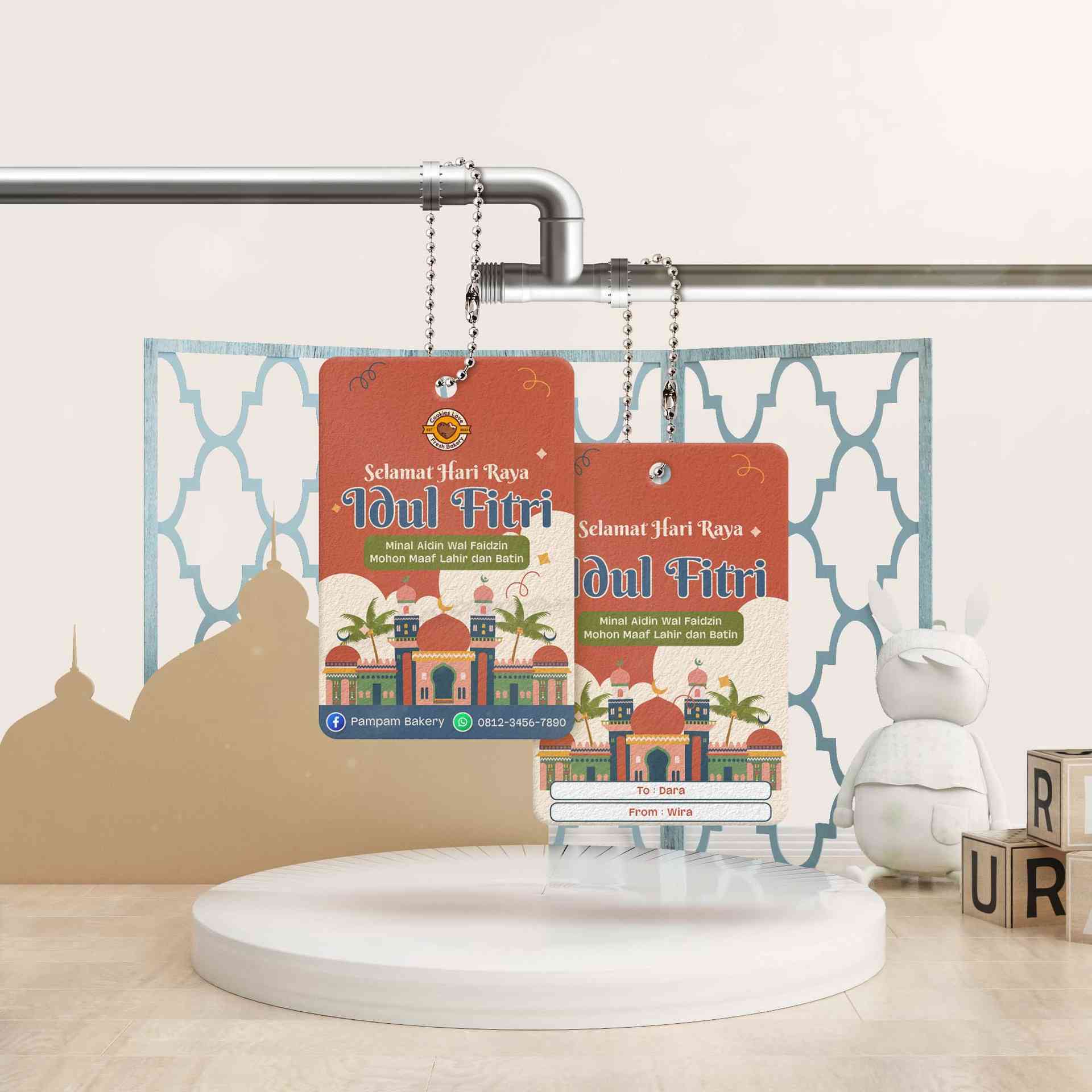 Hang tag Lebaran ini hadir dengan nuansa yang hangat dan penuh makna, dihiasi lentera cantik, sajian khas Idul Fitri seperti ketupat & kue nastar,...