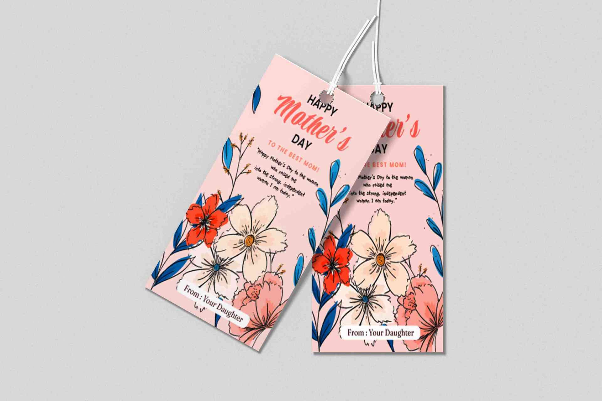 Hangtag ini dirancang dengan warna dasar pink lembut yang menciptakan kesan hangat dan penuh cinta. Ilustrasi bunga-bunga cerah berwarna merah, putih,...