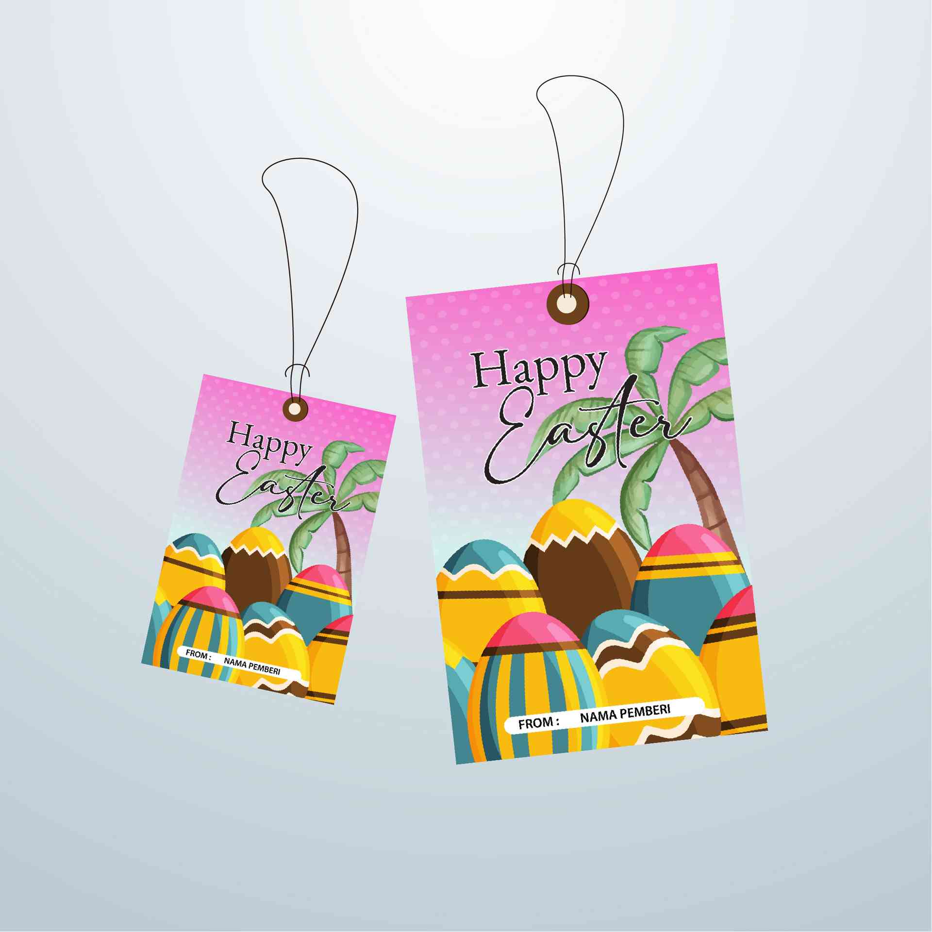 Hangtag cantik bertema Happy Easter ini hadir dengan desain ceria yang menampilkan kelinci lucu memeluk telur Paskah berhiaskan pita. Latar belakang b...