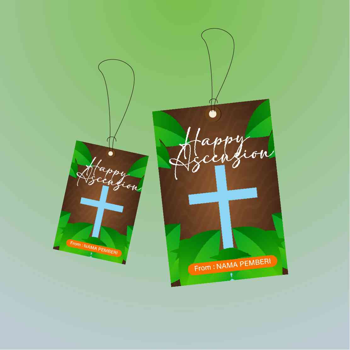 Didesain dengan salib berwarna coklat yang bersinar di tengah cahaya dan dikelilingi daun-daun hijau, hangtag ini memberikan kesan damai dan penuh keh...
