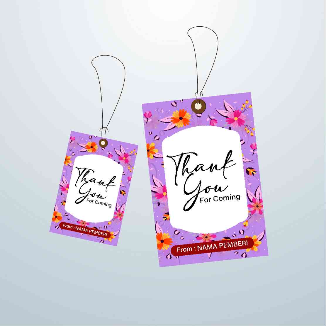 Menghadirkan desain ceria dengan latar ungu dan motif bunga warna-warni, hangtag ini memberikan ucapan terima kasih dengan penuh kehangatan dan kasih....