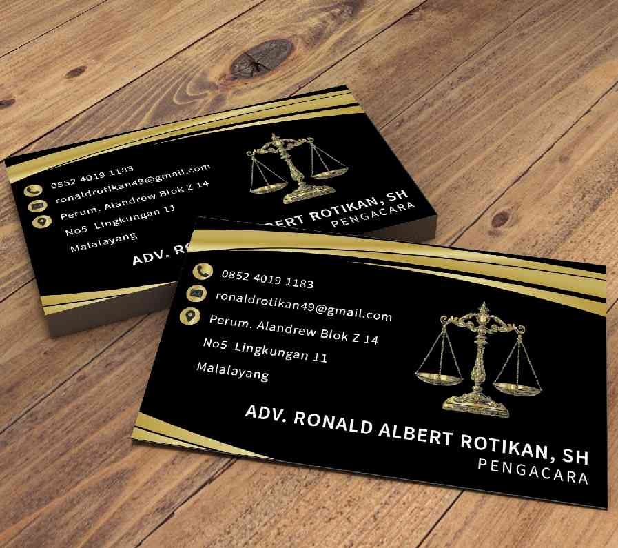 Kartu nama ini dirancang dengan nuansa profesional dan eksklusif, memadukan latar belakang hitam pekat dengan aksen lengkungan emas mengilap yang mele...