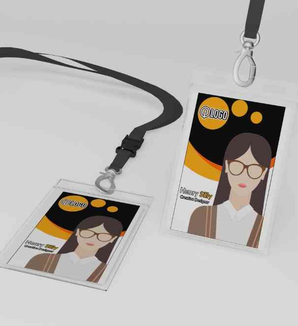 🖼️ Desain Visual:Tampilan Umum:Dua ID card dalam holder plastik bening, dipasang dengan tali lanyard hitam.Gaya ini sangat cocok untuk perusahaan ram...