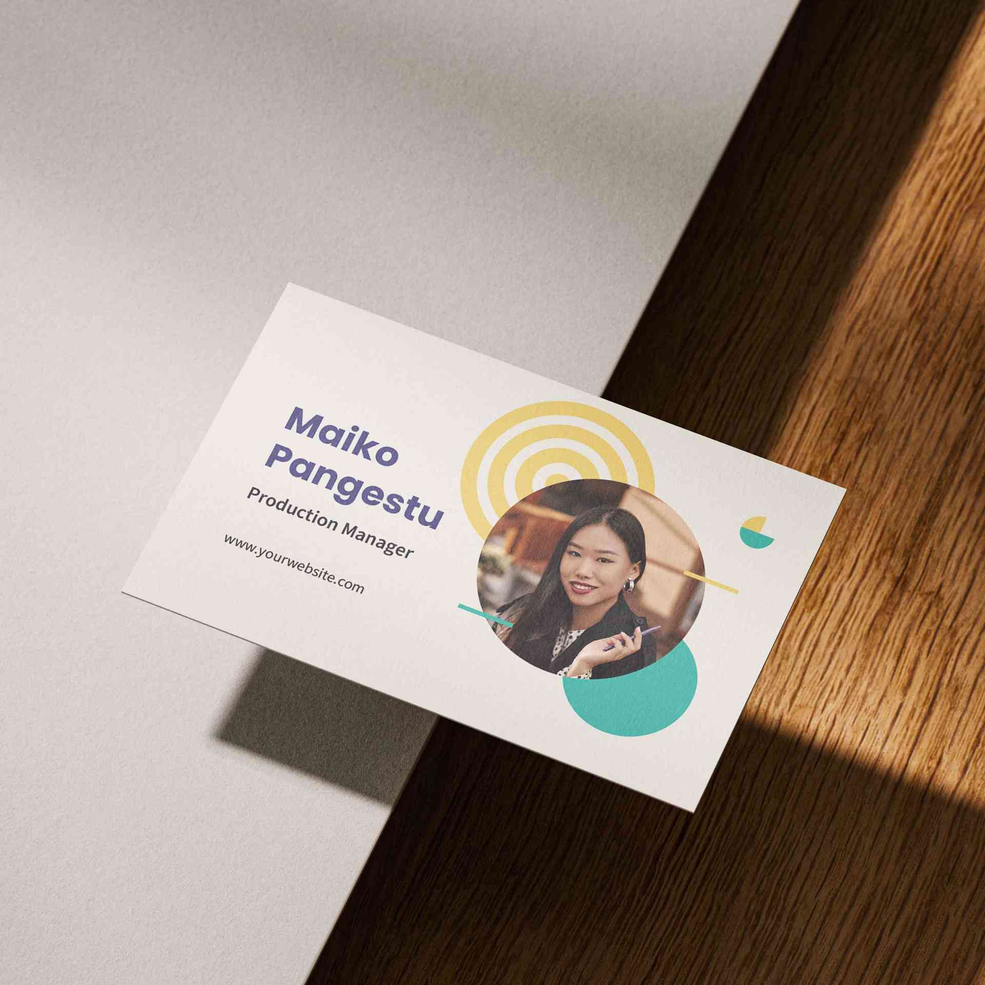 Kartu nama profesional didesain dengan nuansa hijau muda yang segar berpadu sentuhan putih, memberikan kesan modern dan ramah. Bagian pojok menampilka...