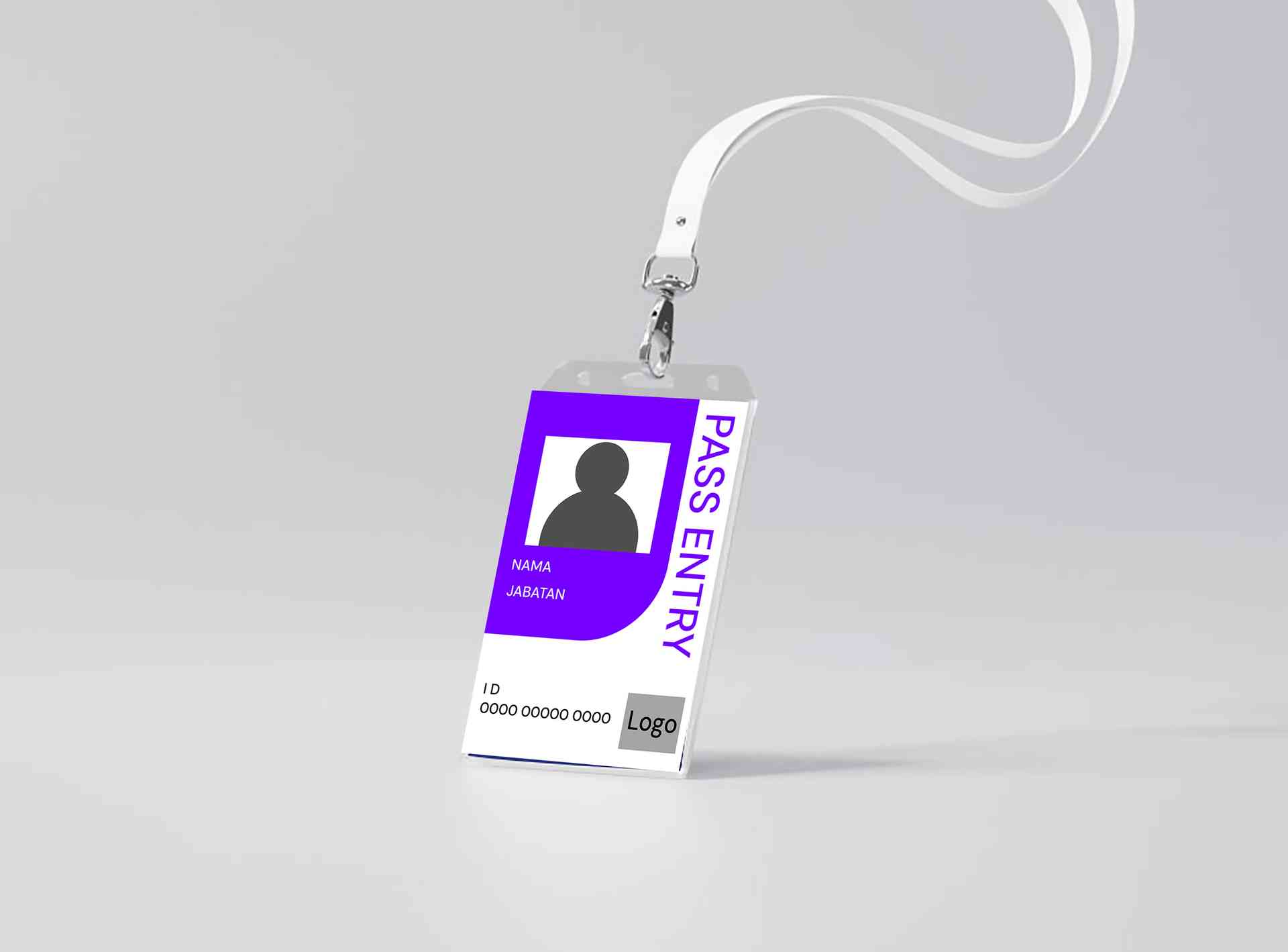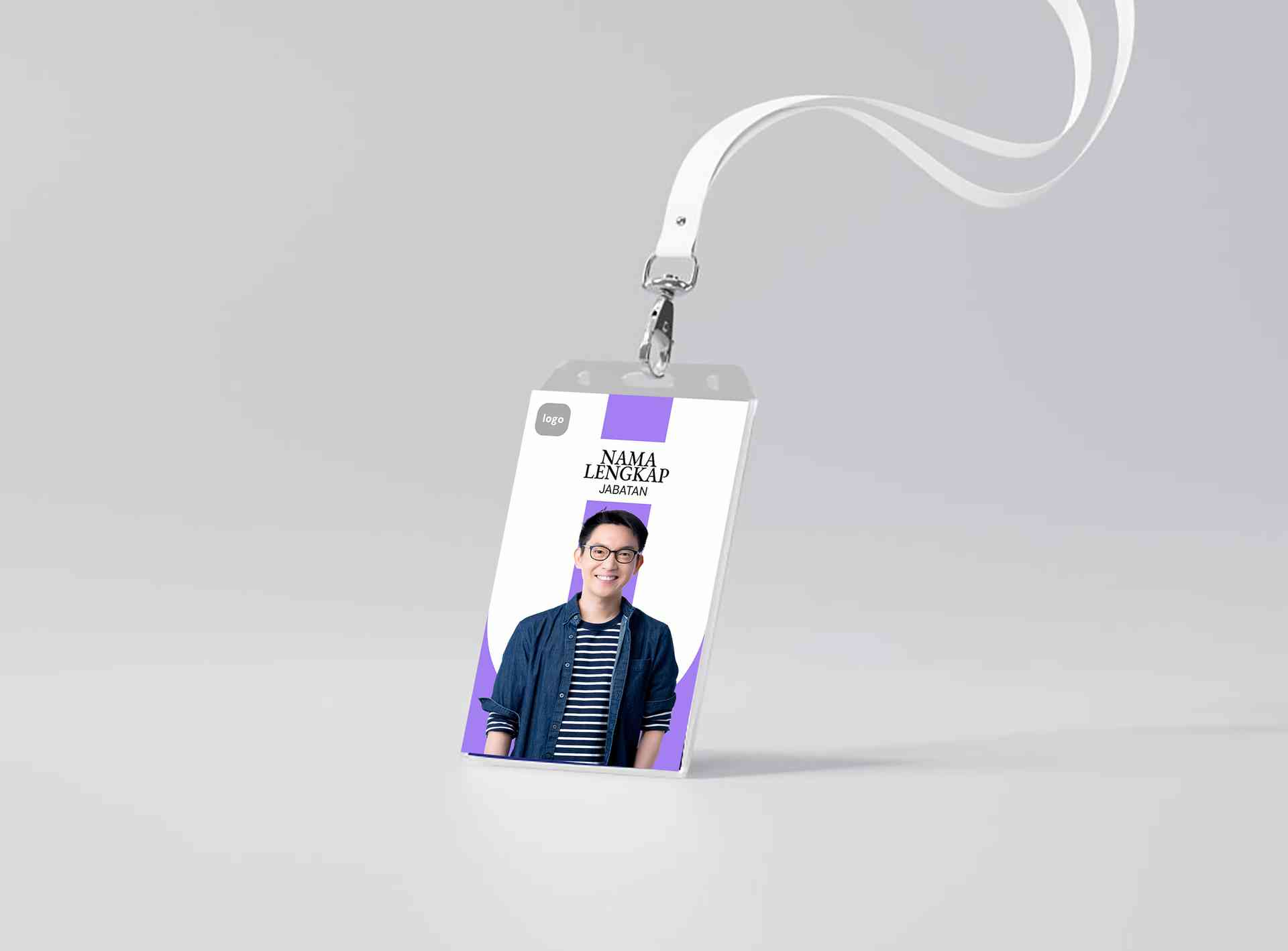 ID card ini mengusung desain minimalis dengan dominasi warna putih bersih yang dipadukan aksen ungu lembut di sisi kiri dan kanan, memberikan kesan pr...