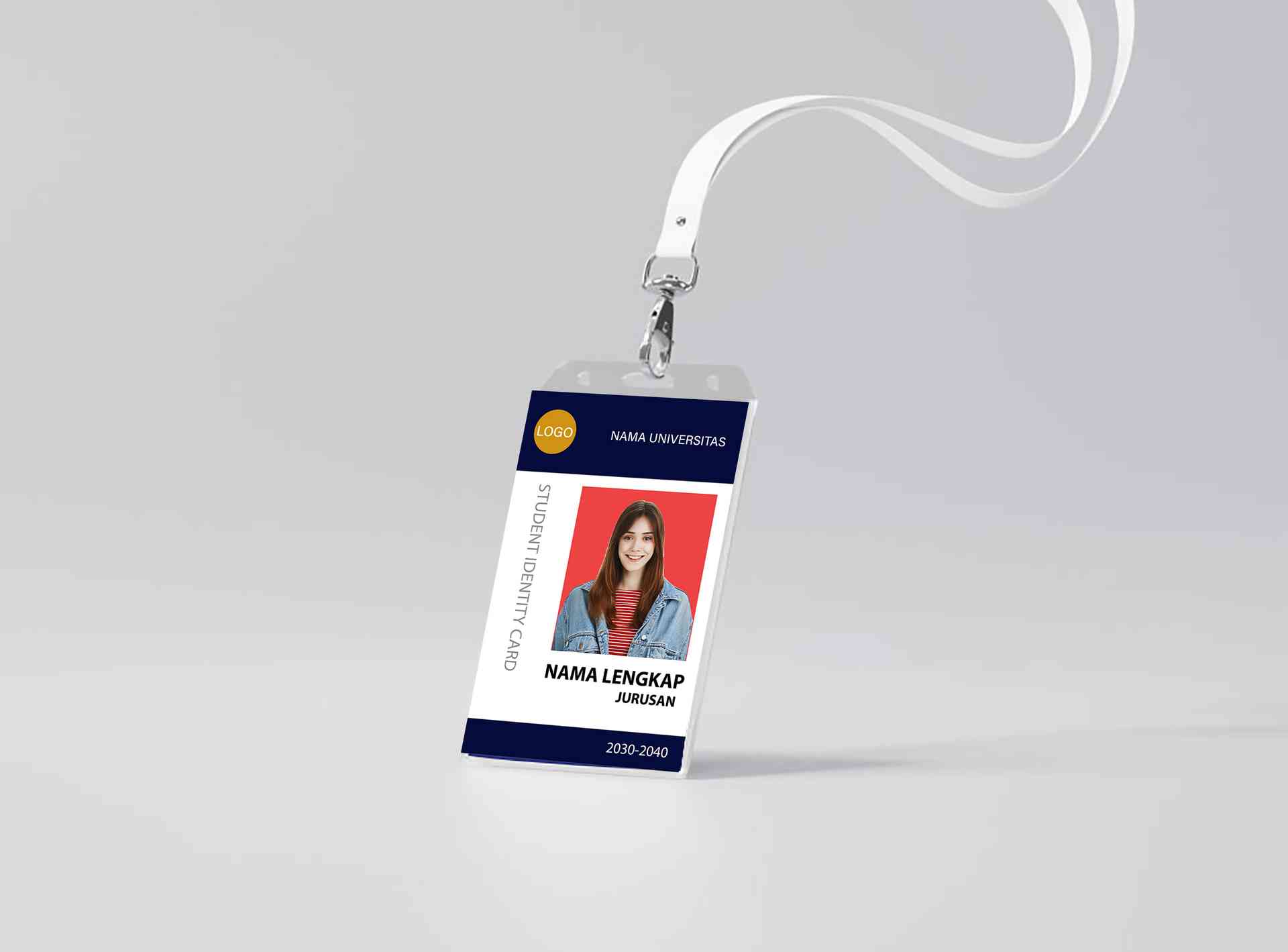 ID Card dengan kombinasi oranye-kuning ini berbentuk persegi panjang vertikal, menampilkan karakter utama berupa foto individu berpakaian formal denga...