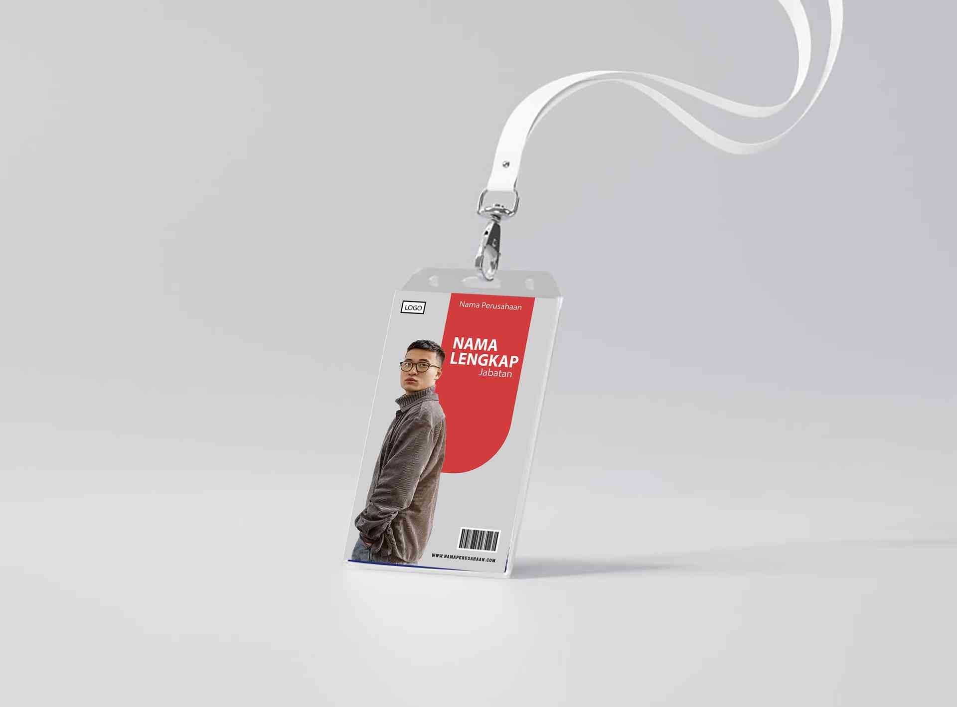 ID Card Merah Putih Profesional berbentuk persegi panjang dengan dominasi warna merah dan putih, menampilkan desain clean dan formal. Bagian visual ut...