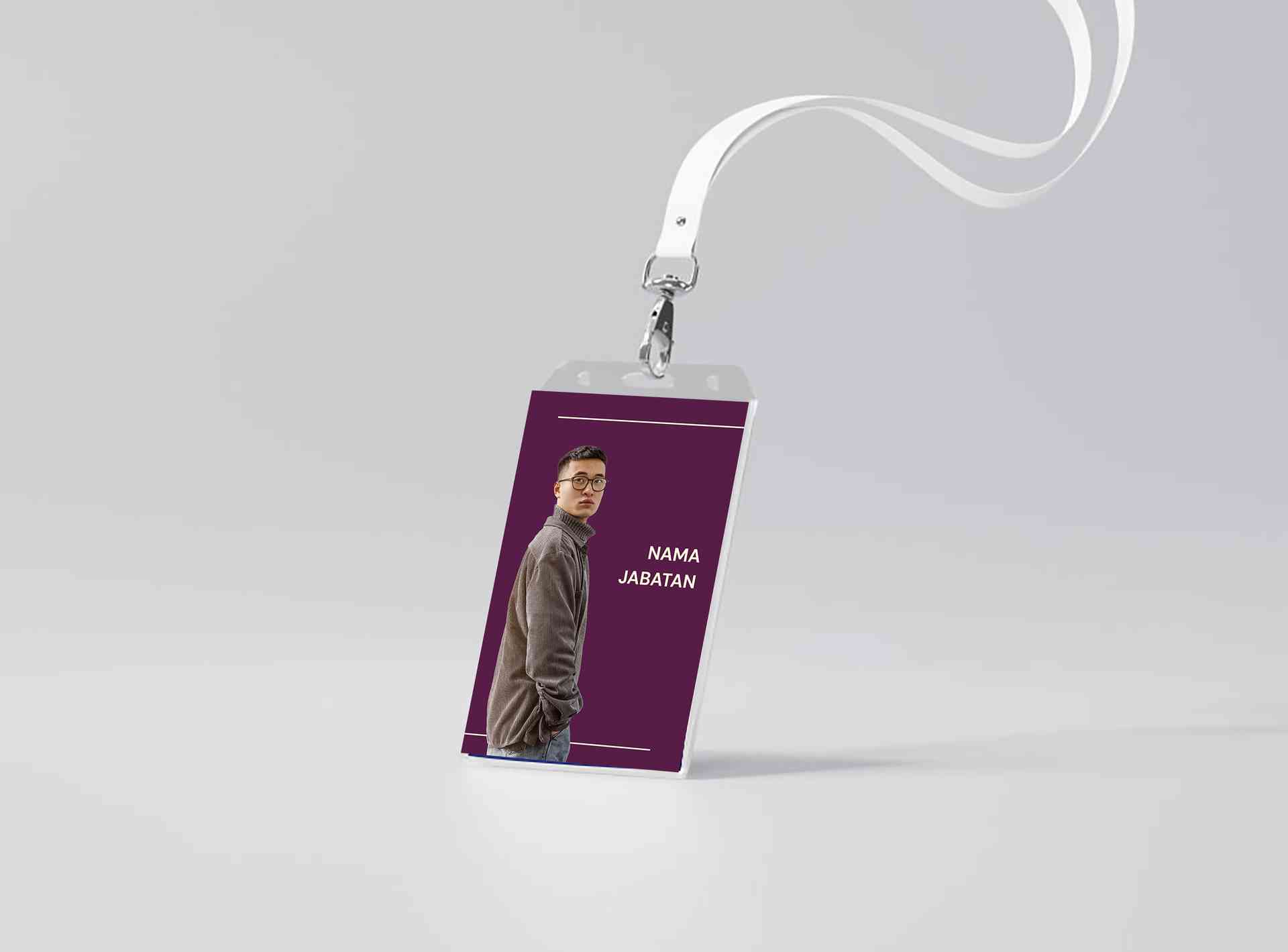 ID card ini hadir dengan konsep elegan minimalis berwarna ungu tua polos, dilengkapi garis putih tipis di atas dan bawah sebagai frame yang menambah k...
