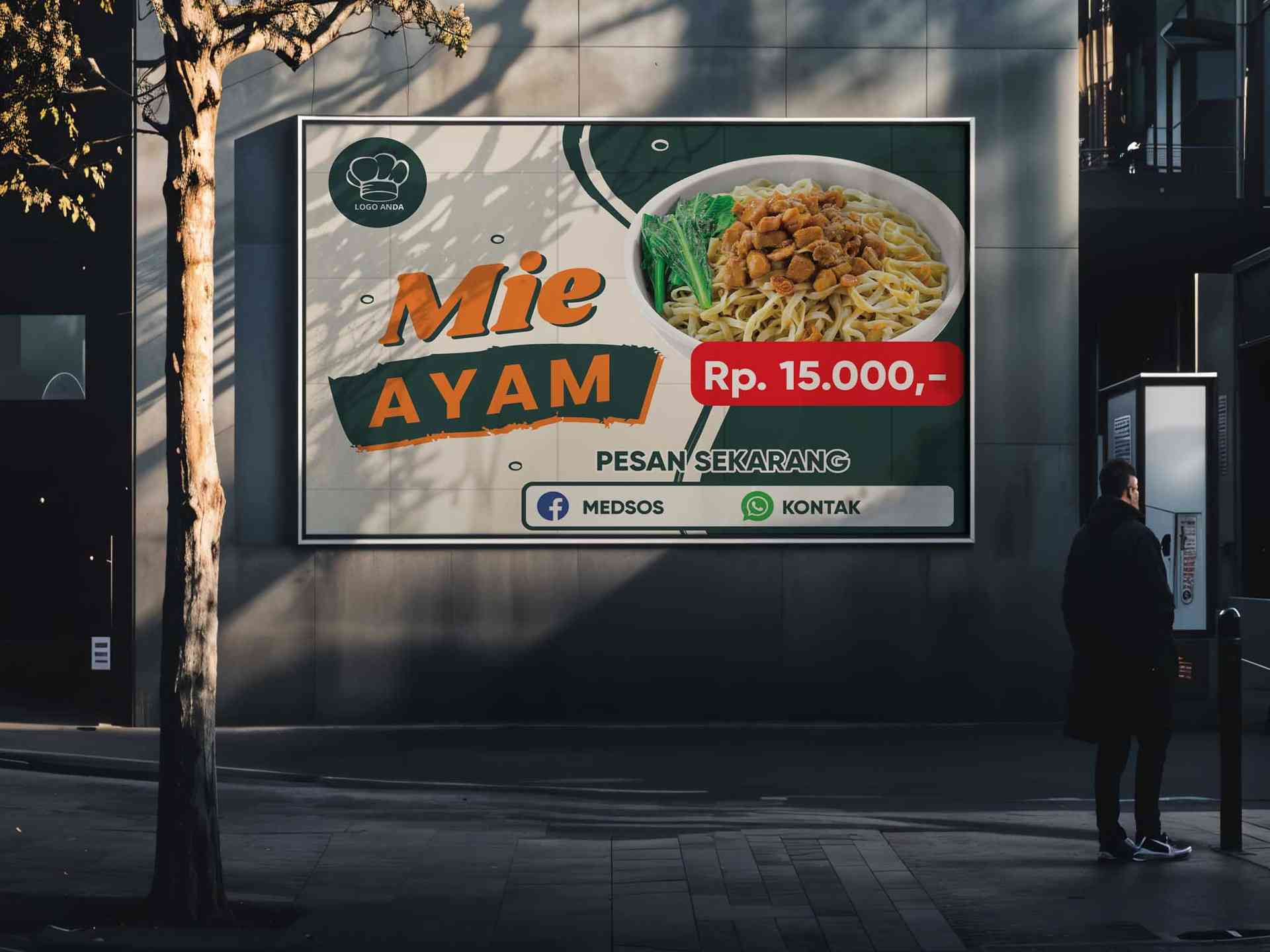 Deskripsi Baliho Promosi Mie AyamBaliho ini merupakan media promosi kuliner yang menampilkan menu andalan berupa Mie Ayam dalam desain yang menarik da...