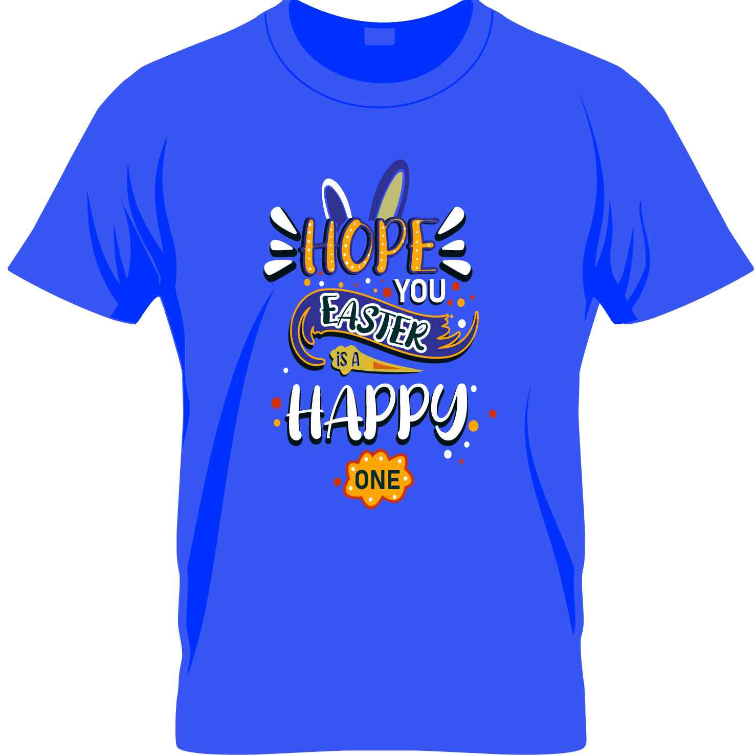 Desain kaos ini mengusung pesan positif dan penuh harapan dengan tulisan "HOPE YOU EASTER IS A HAPPY ONE" yang terletak di bagian depan kaos. Tulisan...