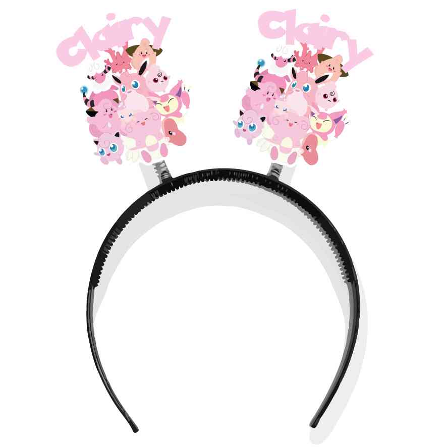 Bando Tuing Tuing Tema Pokemon Pink berbentuk ikat kepala hitam dengan dua ornamen besar di bagian atas yang menonjolkan karakter-karakter Pokemon ber...