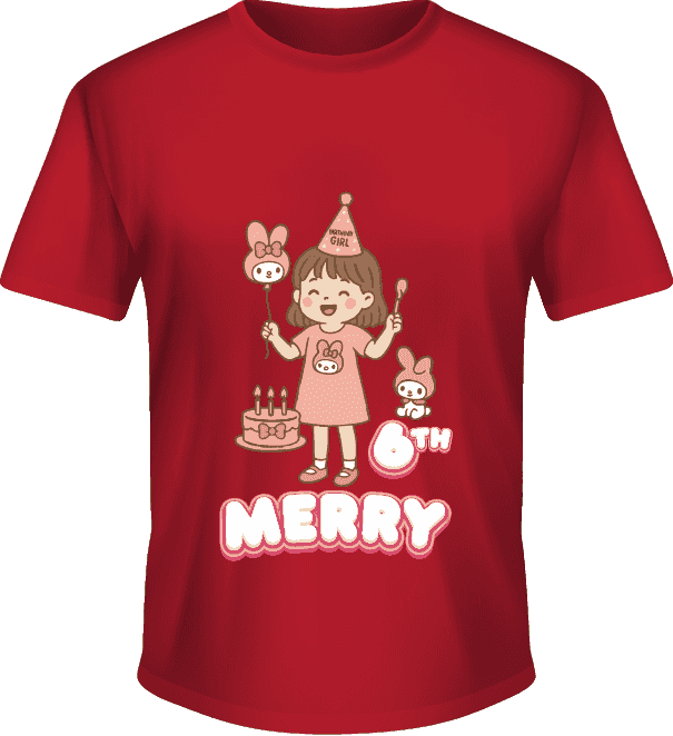 Kaos merah ceria ini didesain khusus untuk merayakan ulang tahun ke-6 anak perempuan, dengan ilustrasi karakter imut bertema My Melody. Gambar utama m...