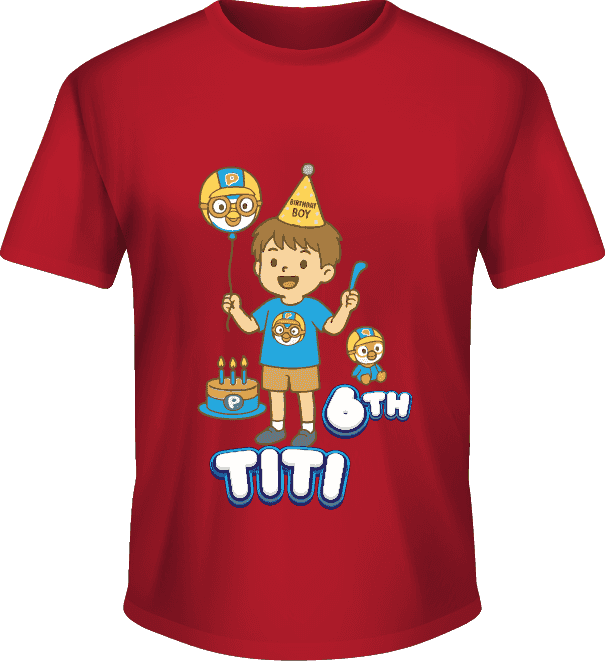 Kaos ulang tahun ini dirancang khusus untuk anak laki-laki berusia 6 tahun, menampilkan ilustrasi karakter lucu bertema Pororo. Desain menonjolkan ana...
