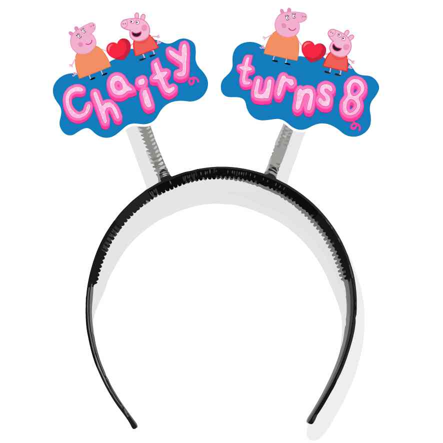 Bando ulang tahun Peppa Pig bertema All Of My Family ini berbentuk lingkaran yang dapat digunakan di kepala, dengan elemen visual mencolok berupa dua...