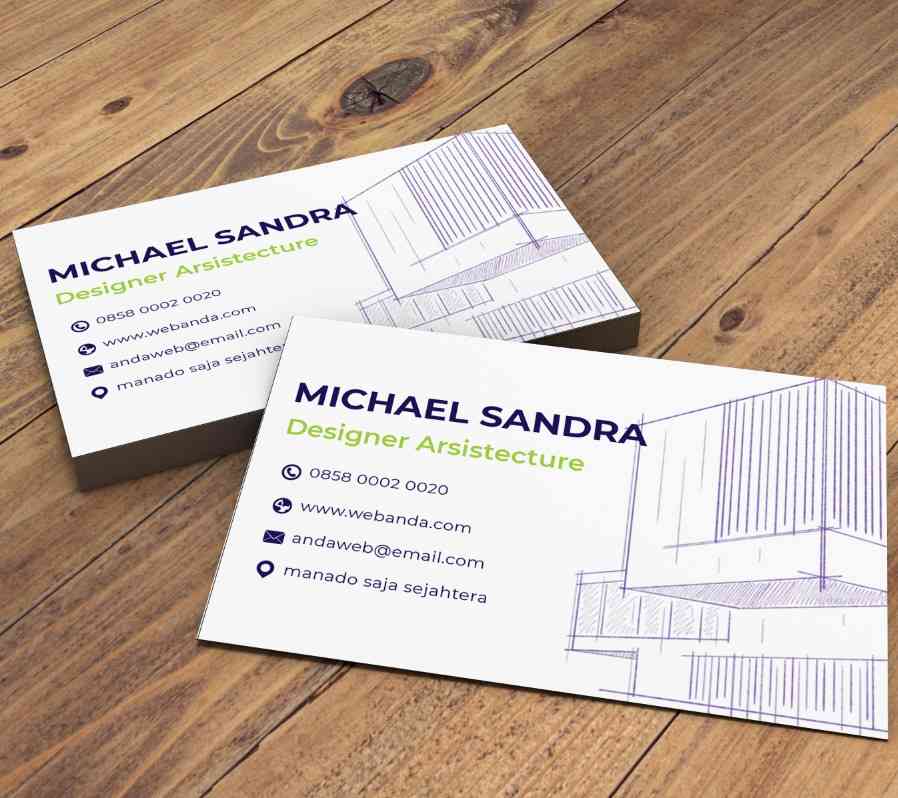 Tampilkan kesan profesional dan elegan dengan kartu nama berdesain eksklusif milik Michael Sandra, seorang Designer Arsitektur. Desain ini memadukan unsur sketsa bangunan bergaya arsitektural dengan aksen warna emas matte yang memberi kesan mewah namun tetap minimalis.