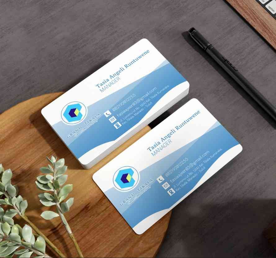 Kartu nama ini memiliki desain yang bersih dan profesional dengan kombinasi warna putih dan biru yang menciptakan kesan modern, segar, dan terpercaya....