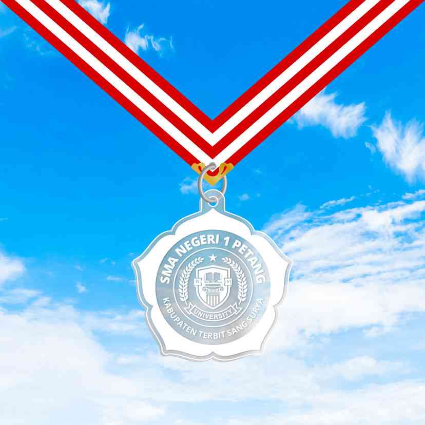 Menampilkan warna silver elegan dan bentuk bunga patriotik, medali ini menggambarkan kematangan dan kedewasaan dari siswa-siswi yang lulus dari jenjan...